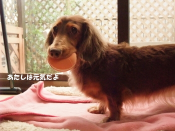チョコの最近のおきにいりは、このマカロン型の鳴るおもちゃ。