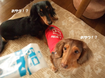 ビニールの音がすると、おやつだと思って待ち構えるチョコ那智