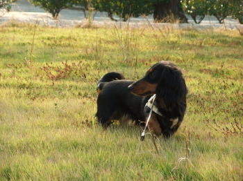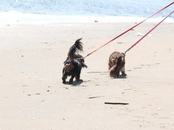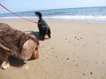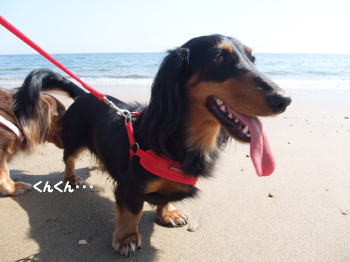 チョコ那智も砂浜のニオイ嗅ぎに夢中。
