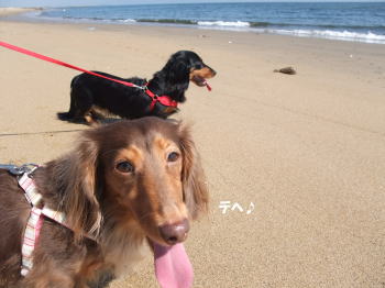 ふたりとも砂がハネて、おなかと足が砂まみれに(^_^;)