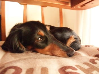 考え中のチョコさん、前足あがってます。笑