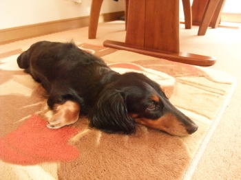 チョコ那智、ラグの下にダニシートが置いてあるのに