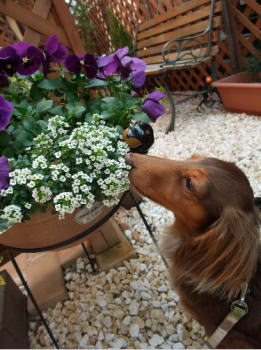 秋に植えたパンジー・ビオラくらいしかなくてさみしい。