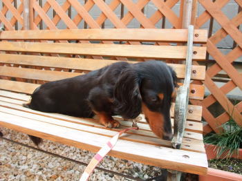 ベンチの上を左右に行ったり来たり・・・全然平気!