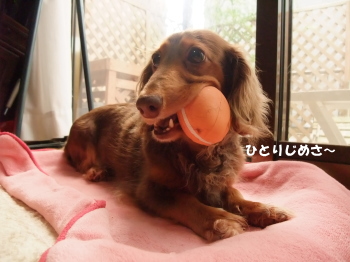チョコの最近のおきにいりは、このマカロン型の鳴るおもちゃ。