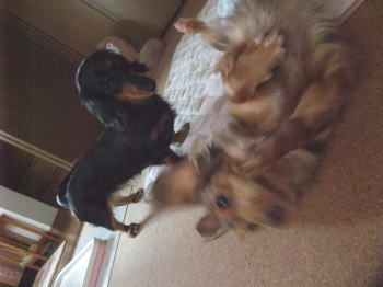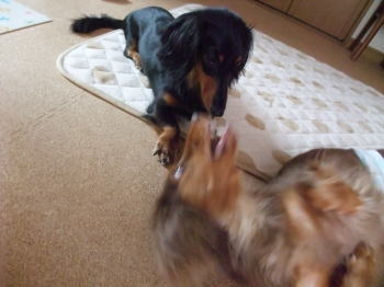 眠っていたビリーを引っ張りだしてきてやってます。ぷぷ