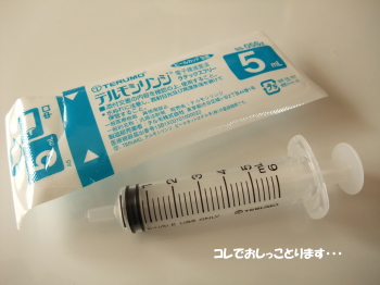 シリンジ。注射器のような形のスポイドみたいなやつ。