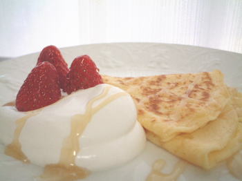 クレープをフライパンで焼いて、それを切って